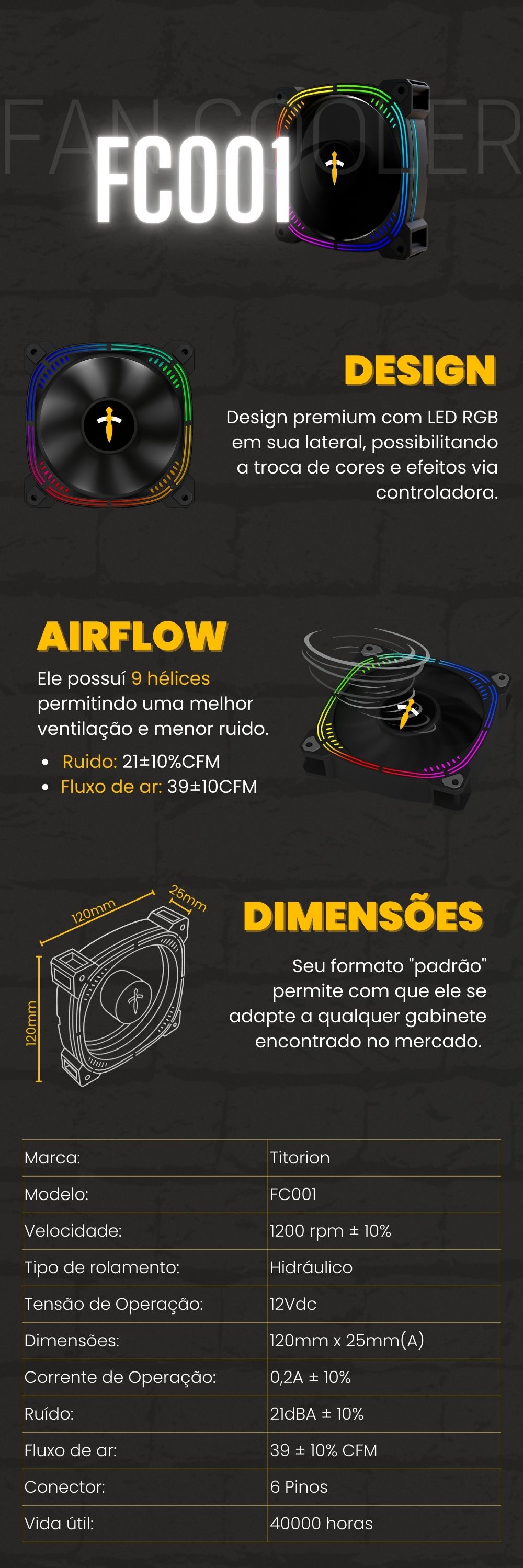 Kit Fan Cooler RGB Preto - UNIDADE