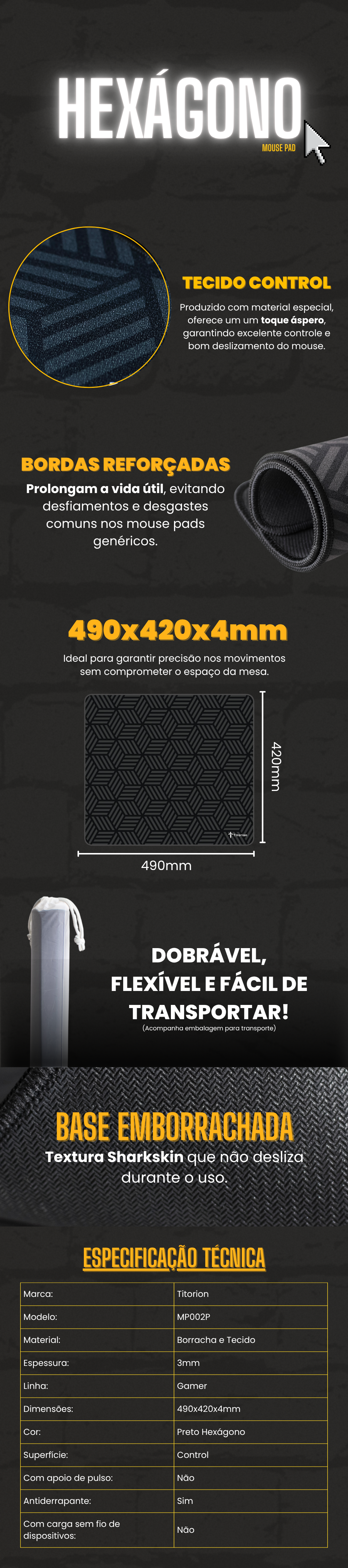 Mouse Pad APEX Control 49X42 / Preto Hexágono