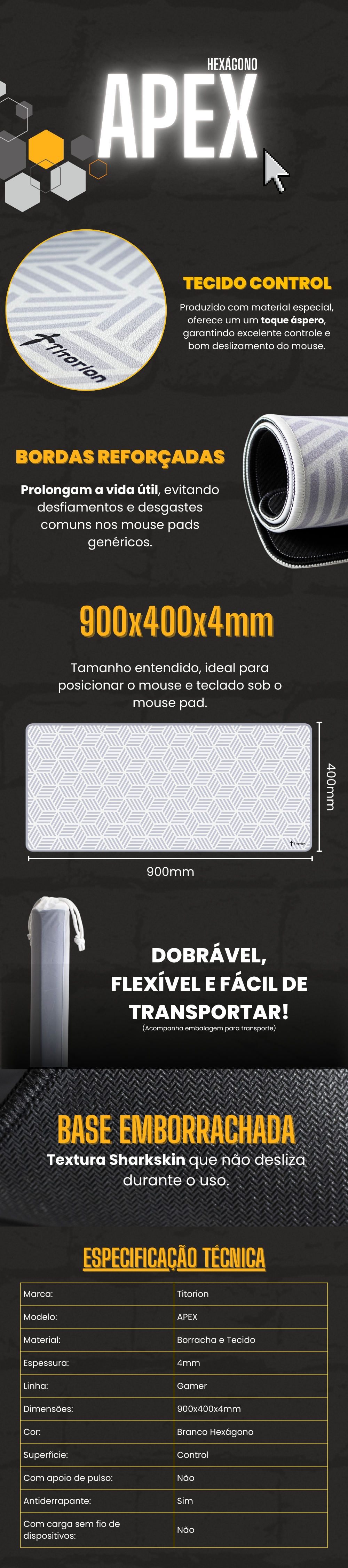 Mouse Pad Apex Control 90x40 / Hexágono Branco