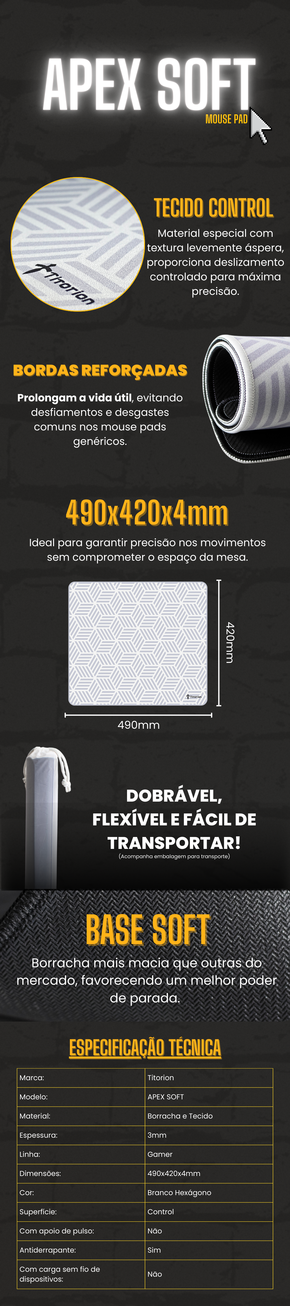 Mouse Pad APEX CONTROL SOFT Hexágono Branco