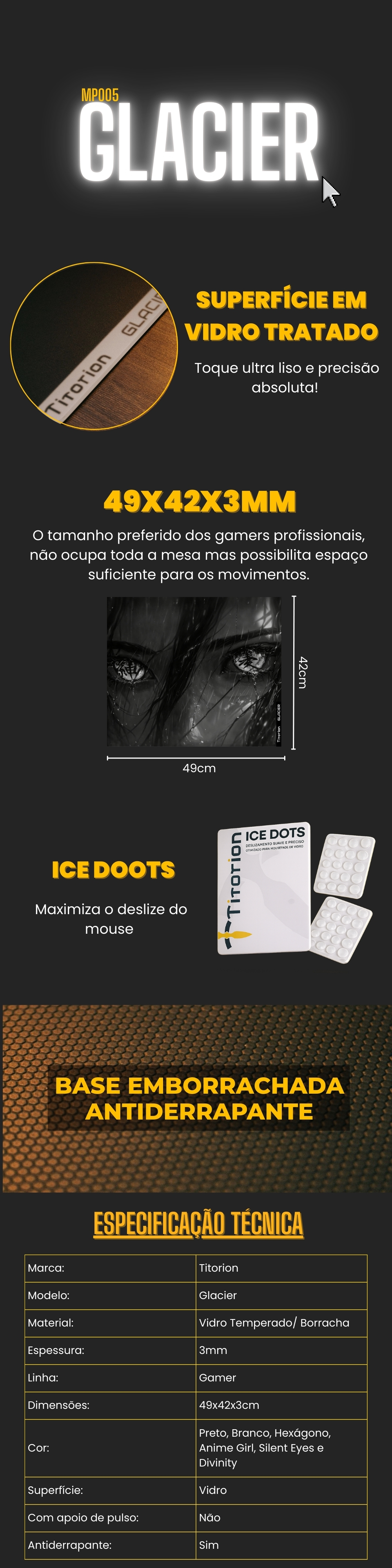 Mouse Pad de Vidro GLACIER 49x42 SPEED Silent Eyes