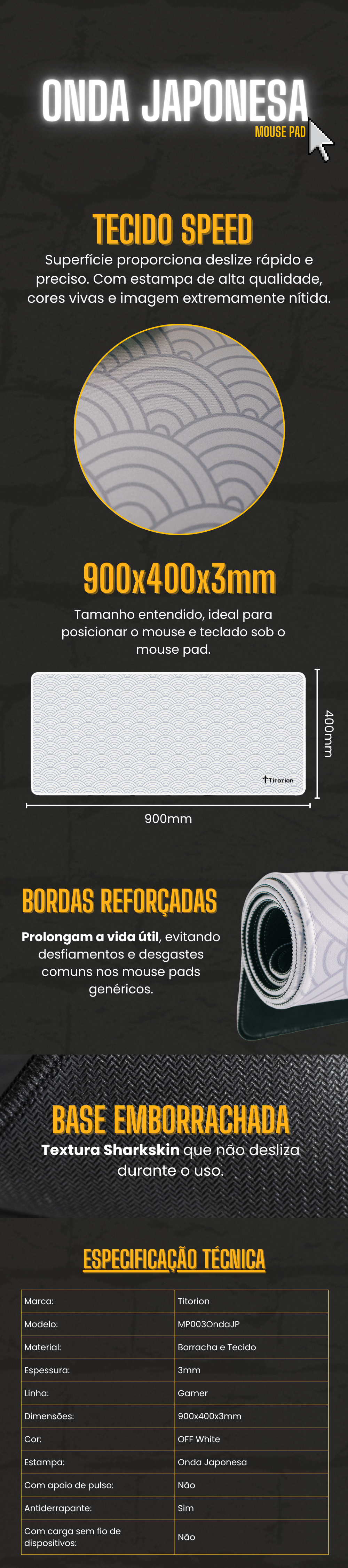 Mouse Pad Deskmat 90x40 Speed / Onda Oriental Branco