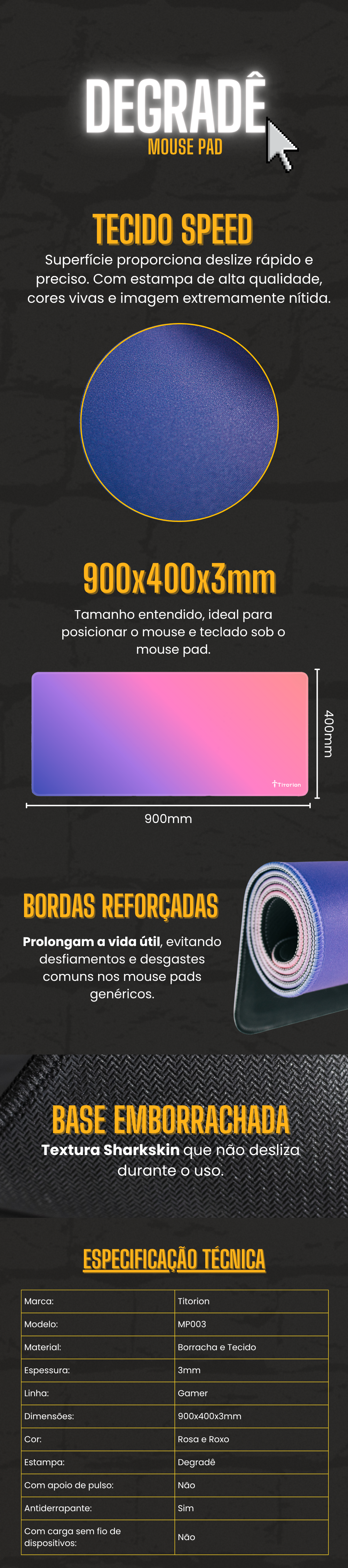 Mouse Pad Deskmat 90x40 Speed / Rosa e Roxo Degradê