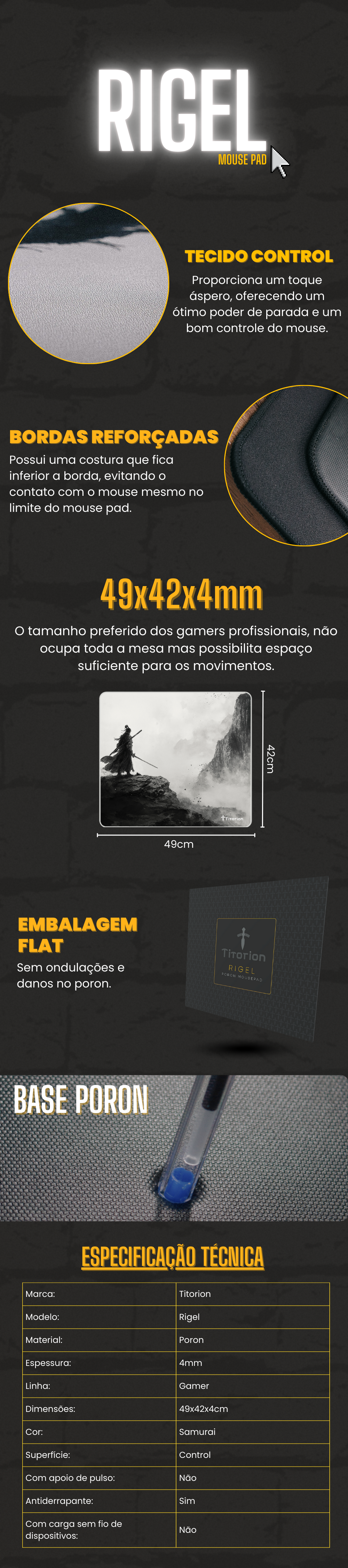Mouse Pad Gamer Rigel 49x42 Poron/ Control Samurai